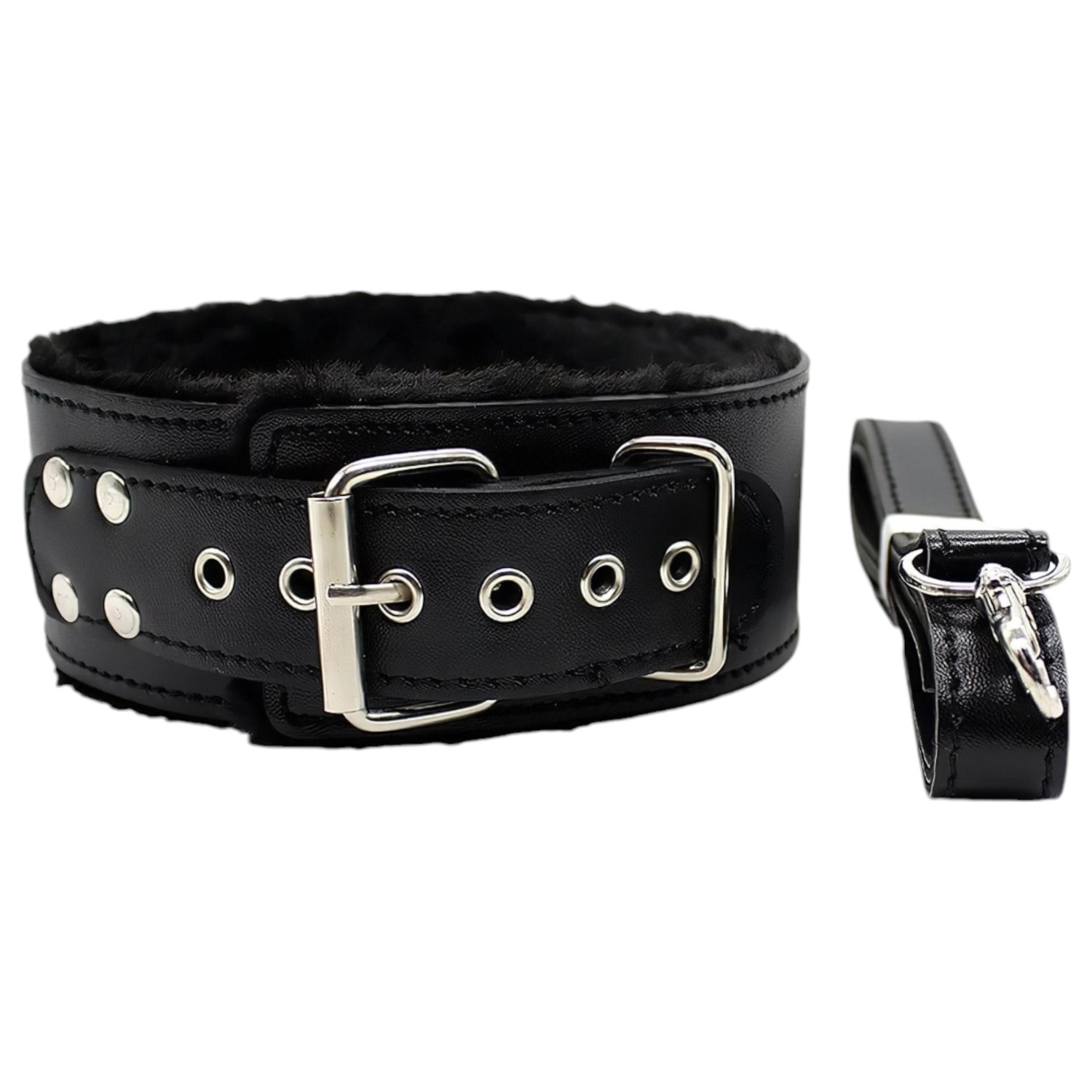 • Hand- en enkelboeien én halsband hebben stevige D-ringen, zijn lekker zacht gevoerd en verstelbaar met metalen gespen