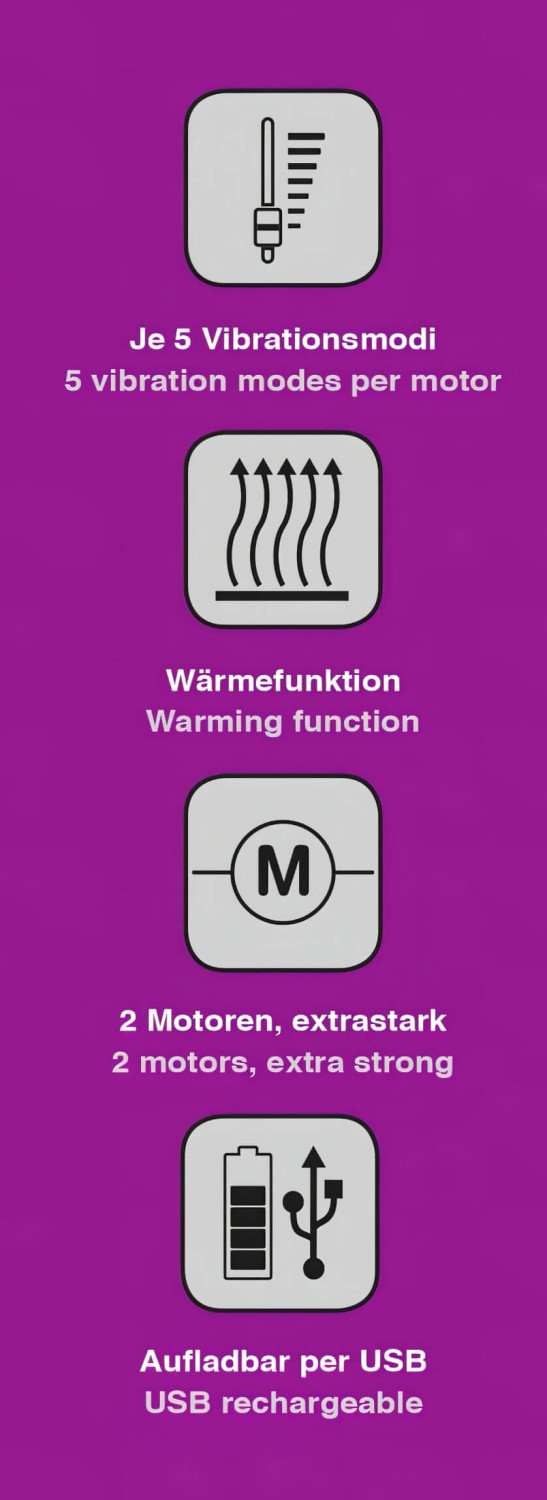 • 5 verschillende vibratiestanden, elk via een aparte motor te bedienen