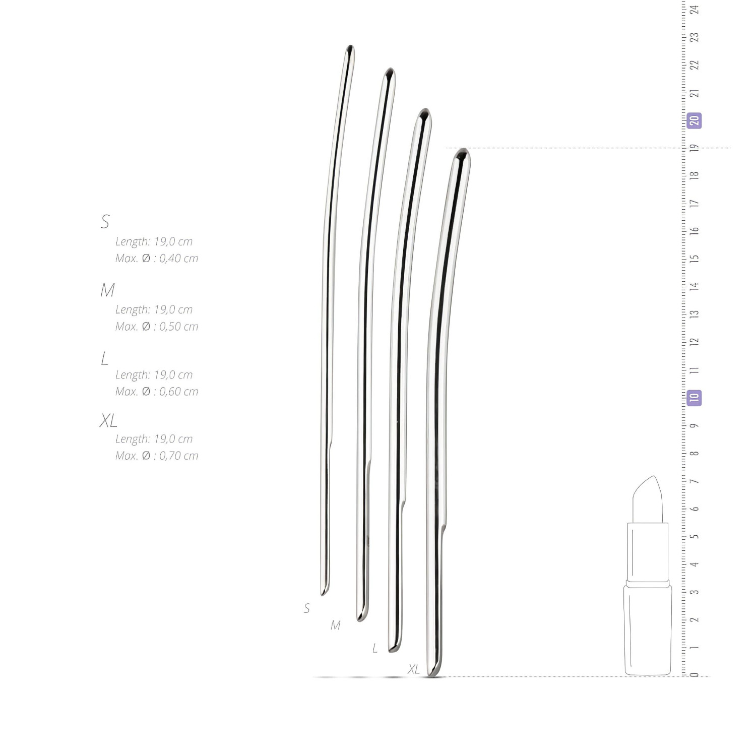 • Lengte: alle dilators zijn 19 cm lang