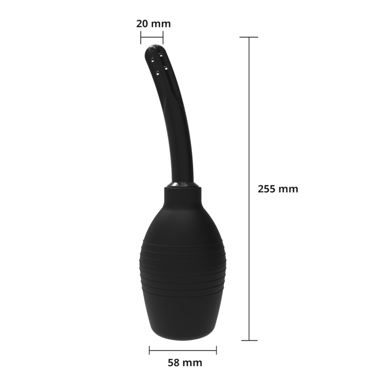 Vul de douche met lauwwarm water, plaats de applicator voorzichtig in de anus en knijp zachtjes in de ballon om het water eruit te laten vloeien, voor een grondige reiniging. Was na gebruik grondig met lauwwarm en zeepwater.