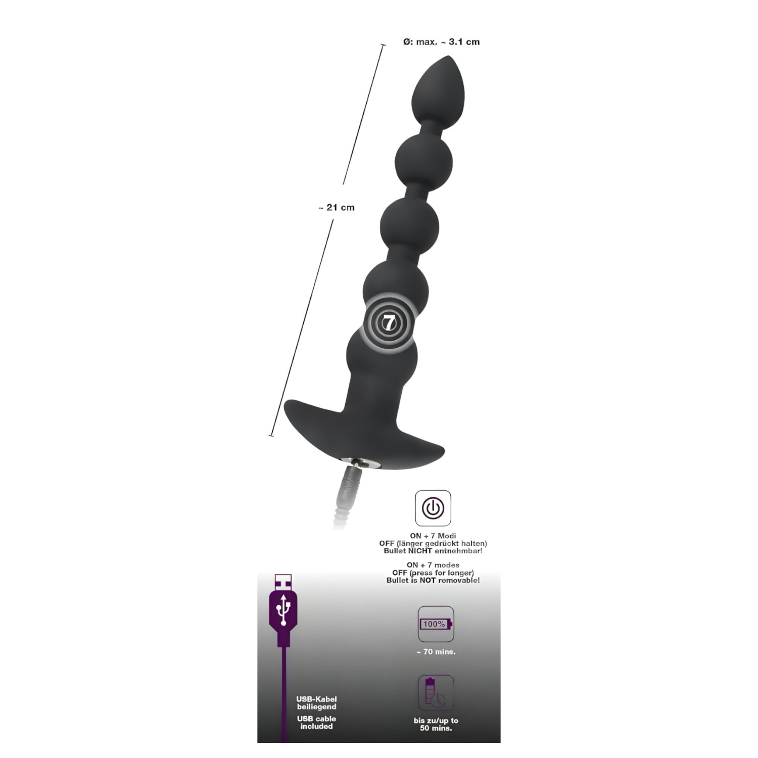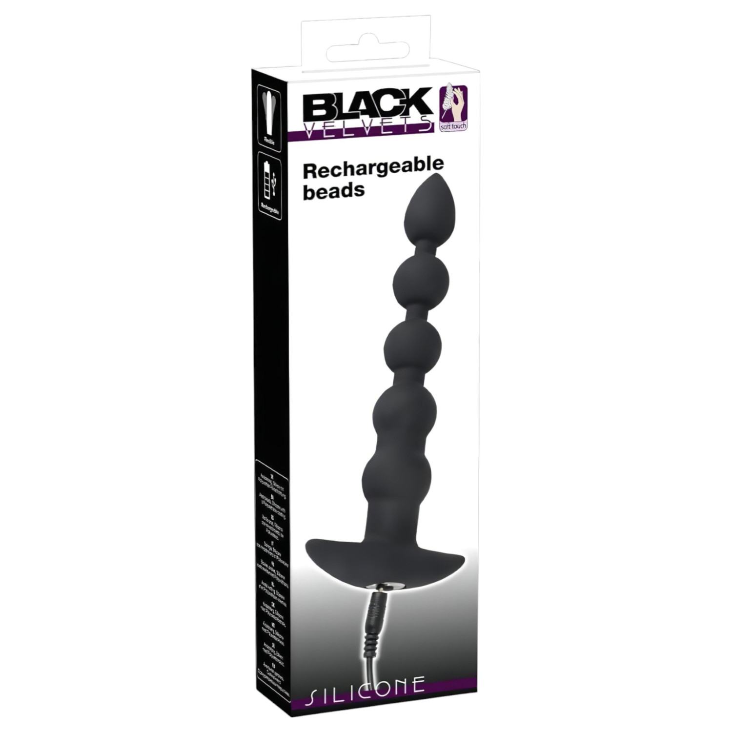 Black Velvet - Oplaadbare Anusvibrator met 5 Kralen (Zwart)